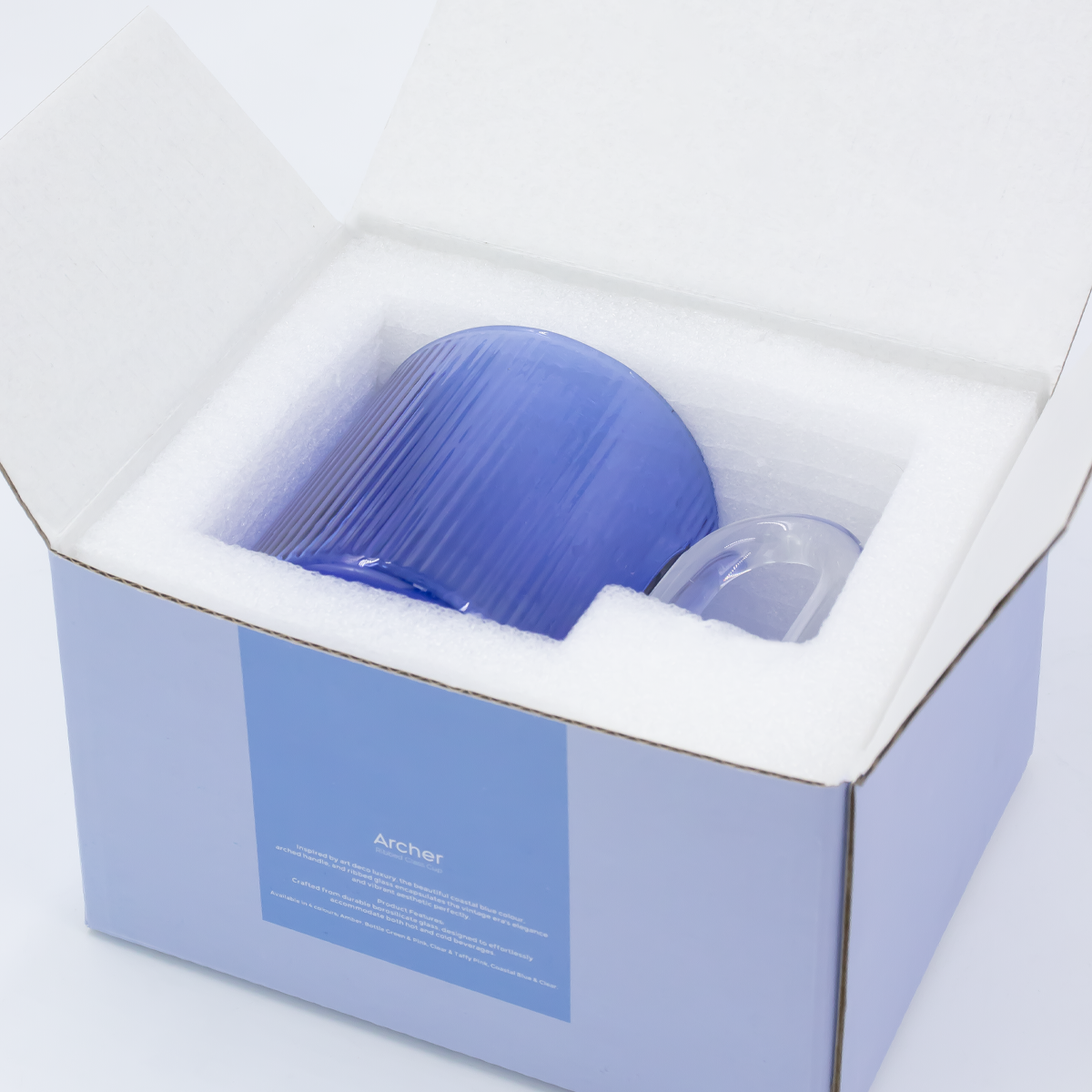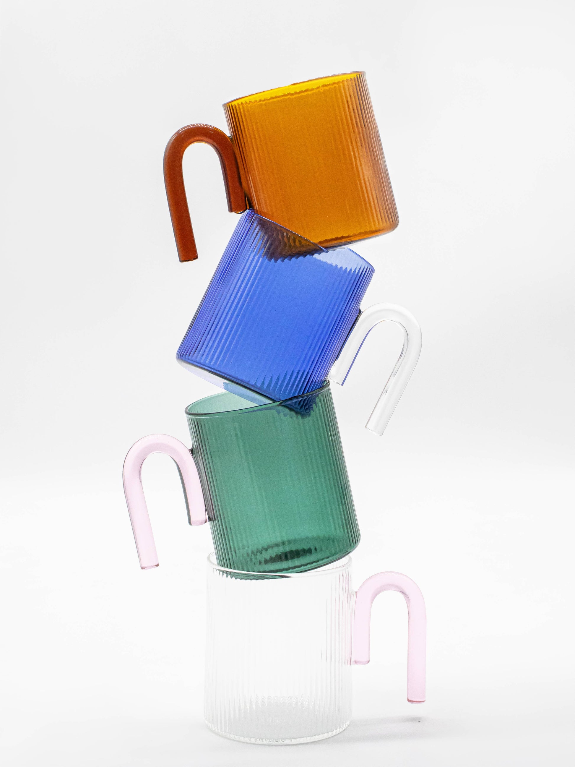 Introducing the Archer Mug, the perfect addition to your morning routine. This beautifully crafted ribbed glass cup is inspired by the art Deco movement, with a stylish arch handle and vintage-style ribbed glass.